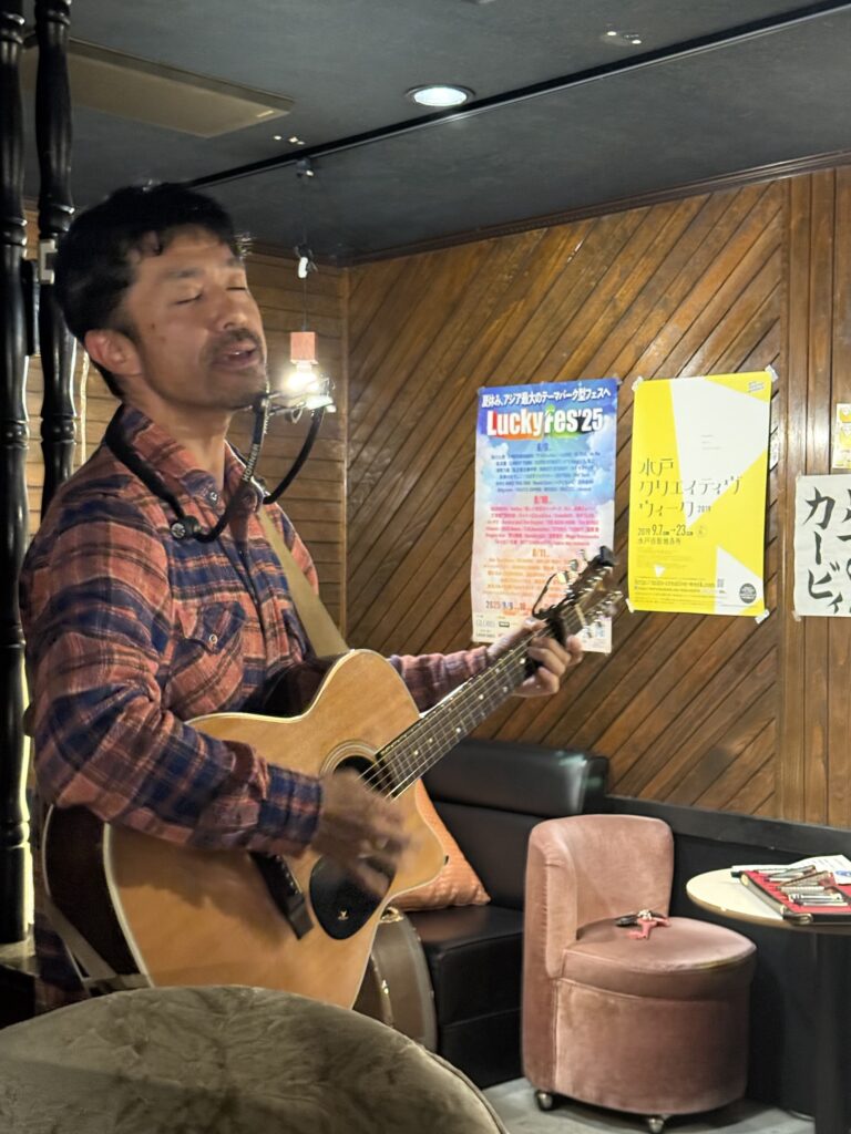 そして夜は、スナックちよ子でクマガイマコトさんの音楽ライブ。